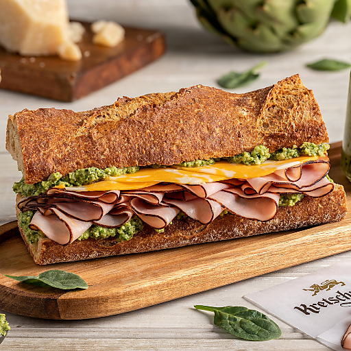 The savory and unique smoky flavor of Kretschmar Black Forest Ham balances well with sharp, earthy artichoke, spinach and walnut pesto. Layer these ingredients together on a crusty baguette with Kretschmar Colby Jack for a sandwich that feels straight off the menu of your favorite gourmet deli.