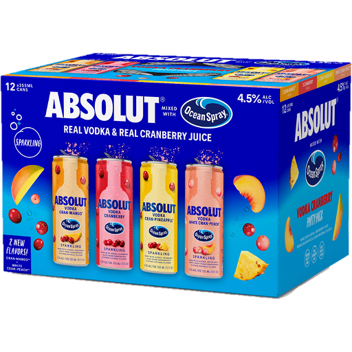 Absolut Ocean Spray Cranberry Ready to Drink Vodka Cocktail, 12 Pack, 12 oz Cans, 9 Proof