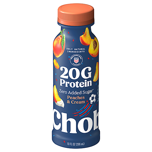 Weekly Ad Digital Coupons Curbside Pickup Favorites FAQs ⓘ Chobani Zero Added Sugar Greek Yogurt Peaches & Cream Protein Drink 10 fl ozChobani® 20g Protein has complete proteins to help you feel fuller for longer and vitamin B12 to unlock energy, naturally. Crafted with real fruit and 0g added sugar.