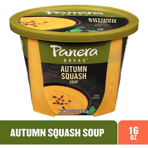 Panera Autumn Squash Soup delivers a bakery-cafe inspired favorite in a microwavable cup that you can take with you on-the-go. This soup is made with pumpkin and butternut squash blended with ginger, warm spices and a hint of apple. Whether you have a busy day and need a quick meal or you just want to enjoy a warm cup of soup, this Panera soup cup is perfect for any time of day. Make easy, craveable meals with help from Panera Bread at home.