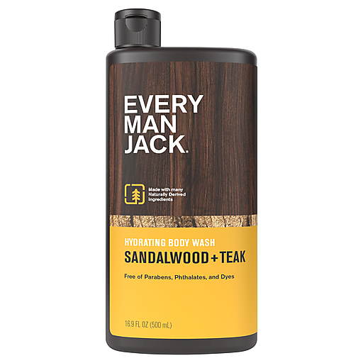 EVERY MAN JACK, BODY WASH + SHOWER GEL, SANDALWOOD IS NEVER TESTED ON ANIMALS. THIS PRODUCT NOURISHES AND PROTECTS YOUR SKIN WHILE CLEANING DEEPLY TO REMOVE DIRT AND GRIME. THE SANDALWOOD FRAGRANCE OF EVERY MAN JACK, BODY WASH + SHOWER GEL CALMS WHILE COCONUT-DERIVED SURFACTANTS CLEANSE AND HYDRATING GLYCERIN HELPS TO MOISTURIZE SKIN. THIS PRODUCT CONTAINS 16.9 FL. OZ. OF PRODUCT. EVERY MAN JACK, BODY WASH + SHOWER GEL, SANDALWOOD PACKAGING IS MADE FROM 50% POST CONSUMER RECYCLED PLASTIC AND CAN BE RECYCLED AFTER USE.