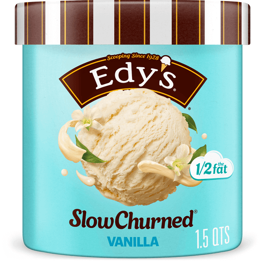 Discover a creamy, delicious treat with 1/2 the fat and 1/3 fewer calories than full-fat ice cream with Edy’s/Dreyer’s Slow Churned Classic Vanilla Light Ice Cream. Don’t be fooled by less fat and fewer calories, this light vanilla ice cream has all the creamy goodness of regular ice cream! Containing no artificial colors or flavors, this classic ice cream is also OU Kosher dairy certified and is made with milk and cream from cows not treated with the growth hormone rBST*. Chasing fireflies. Puppy kisses. Family movie nights. Some of the best things in life are uncomplicated. That’s why our vanilla light ice cream is made with basic ingredients like milk and cream. It’s the perfect way to celebrate the best little moments in life. How do we make Slow Churned light ice cream with 1/3 fewer calories and 1/2 the fat but with all the creaminess and goodness of regular ice cream? We start with milk and cream and mix our special recipe for scoops of perfection every time! For nearly a hundred years, Edy's/Dreyer's has been dedicated to serving you and your families the richest, creamiest ice cream with real, high-quality ingredients the whole family can enjoy together. Today, we honor our legacy of reinvention and optimism, by celebrating the ways people remix in their everyday lives. Whether your Saturday nights are a bit out of the ordinary, or you like adding a little something extra to your dessert. At Edy's/Dreyer's, we respect the remix, and we’re right there with you. Remixing Since Forever.