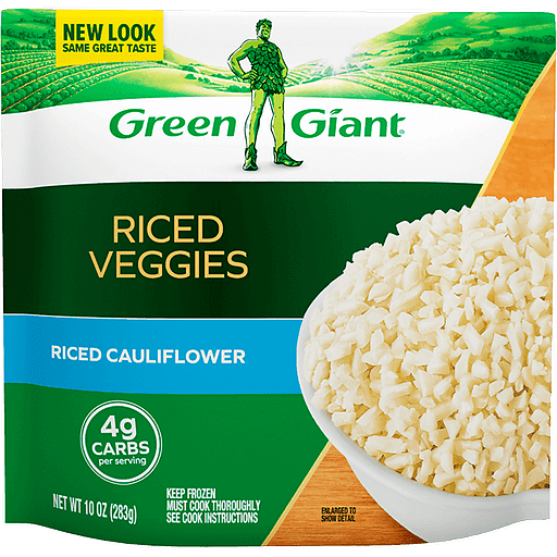 Green Giant Riced Veggies Cauliflower has the feel of one of your favorite side dishes but with a frozen veggie, cauliflower twist. Made with 100% vegetables, these riced vegetables are a delicious dinnertime side dish and a unique alternative to white rice. These Green Giant frozen vegetables come without sauce or seasoning so you can prepare them how you want or pair them with a variety of entrees. These frozen rice veggies have 4 grams of carbs per serving and are gluten-free. Serve these riced veggies as an alternative to rice, potatoes, and pasta at any lunch or dinner. To prepare this riced cauliflower, simply follow the cooking instructions and heat in the microwave or on the stovetop. Keep Green Giant frozen riced cauliflower in the freezer until you are ready to prepare and serve.