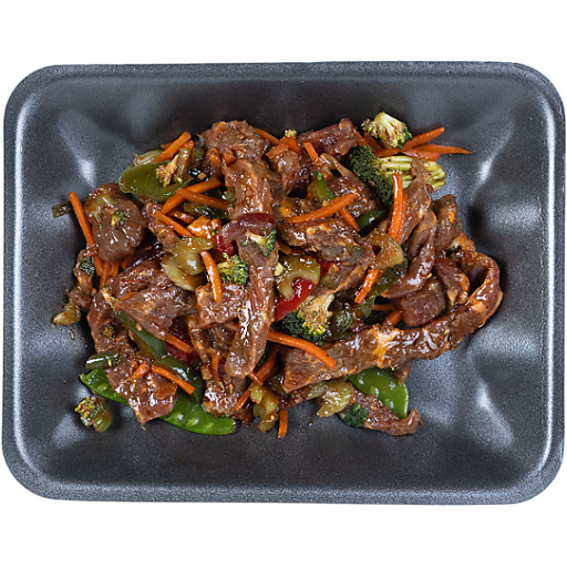 INGREDIENT: USDA CHOICE MEAT, BROCCOLI, CELERY, SNOW PEAS, GREEN PEPPER, RED PEPPER, RED ONION, SHREDDED CARROTS, YAKINUKU SAUCE (WATER, SOY SAUCE (WATER, WHEAT, SOYBEANS, SALT) SUGAR,SALT,GARLIC PUREEMODIFIED FOOD STARCH PEAR CONCENTRATE JUICESESAME OIL RED CHILES PUREE PINEAPPLE CONCENTRATE JUICE, SESAME SEED, SODIUM ASCORBATE, LEMON CONCENTRATE JUICE, ROASTED GARLIC PUREE, MINCED GARLICPAPRIKA OLEORESIN COLORYEAST EXTRACTSPICES XANTHAN GUM), PARSLEY ALLERGEN: WHEAT, SOY COOKINGINSTRUCTIONS: PAN FRY STIR FRY MIX IN A LARGE SKILLET OR WOK FOR 5-7 MINUTES. PREHEAT OVEN TO 400F PLACE MIX IN BAKING DISH AND COOK FOR 25-35 MIN. FOOD SAFETY: Produced in a facility that also processes Soy, Wheat, Milk, Eggs, Tree Nuts, Peanuts, Fish, and Shellfish. Keep refrigerated at or below 41F. COUNTRY OF ORIGIN: USA