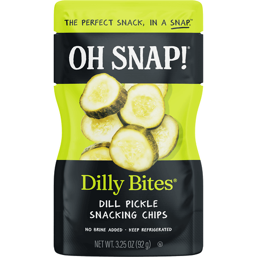 OH SNAP!® Dilly Bites are the perfect grab n’ go better-for-you snack! Fresh packed in single-serve pouches with no added brine for ultimate convenience, all OH SNAP!® varieties are gluten-free, fat-free and made with non-GMO veggies for a delicious healthy snack alternative. The pickles are refrigerated for a cool, crispy and crunchy texture.