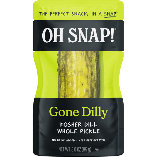 OH SNAP!® Gone Dilly is the perfect grab n’ go better-for-you snack! Fresh packed in single-serve pouches with no added brine for ultimate convenience, all OH SNAP!® varieties are gluten-free, fat-free and made with non-GMO veggies for a delicious healthy snack alternative. The pickles are refrigerated for a cool, crispy and crunchy texture.