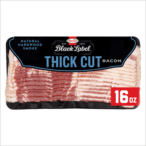 This HORMEL BLACK LABEL bacon has the same great taste as the original cut, but it's cut thicker — a LOT thicker — which means it's perfect for turning into bacon bits, chopping up for a salad, or draping over a steak. If you're looking for savory bacon that never falls apart but cuts like a dream, look no further. Slowly smoked to perfection, HORMEL BLACK LABEL bacon is serious bacon for serious bacon lovers — or anyone ready to become one! WE’RE ALWAYS THE NEW BLACK.