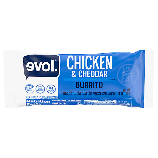 Enjoy on-the-go goodness with this Evol Chicken, Bean & Rice Burrito. It contains tender chicken (raised without antibiotics), braised in a sweet guajillo chile sauce, plus pinto beans, rice, cheddar cheese, roasted corn and an authentic tomato salsa, all hand-rolled in a soft flour tortilla. This delicious microwaveable burrito contains 16 grams of protein and 4 grams of fiber per serving to help fuel your day. Our food philosophy: Love what you eat.