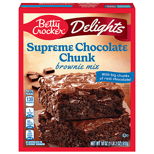 Satisfy your sweet tooth cravings with Betty Crocker Delights Supreme Chocolate Chunk Brownie Mix. This indulgent brownie mix is the quick and easy way to create moist, delectable brownies the whole family will love by adding just a few ingredients. Whip up this brownie baking mix in minutes by simply adding water, oil and eggs. Impress friends and family at your next gathering or brighten up a Tuesday with these decadent baked goods.