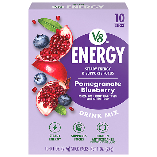 V8 Energy® Pomegranate Blueberry Energy Drink Powder makes it easy to enjoy energy wherever and whenever you need it. Just mix, sip, and refresh.
