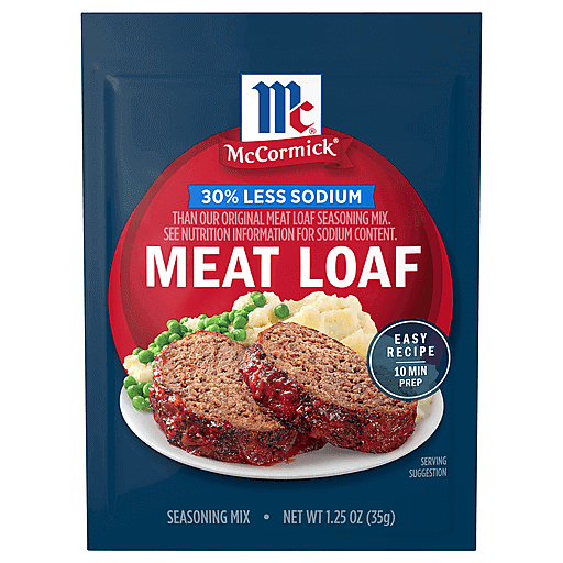 McCormick 30% Less Sodium Meat Loaf Seasoning Mix is the secret ingredient to hearty, home-style meat loaf. Made with McCormick herbs & spices, no artificial flavors or added MSG*, and 30% less sodium than our original meat loaf mix!