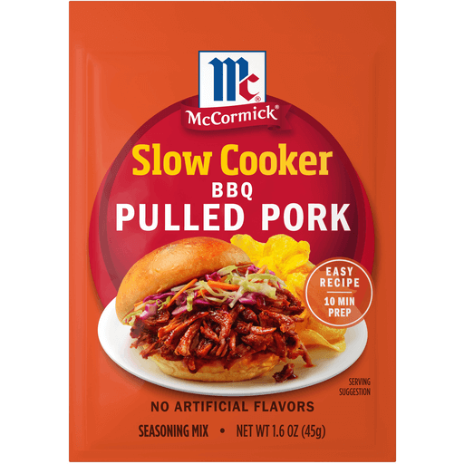 McCormick® Slow Cooker BBQ Pulled Pork Seasoning Mix makes it easy to prepare a comforting meal in your slow cooker or electric pressure cooker any night of the week. Crafted with brown sugar, garlic, chili pepper, and natural hickory smoke flavor for mouthwatering pulled pork. Craving pulled pork sandwiches? Just add seasoning mix, ketchup, brown sugar, and vinegar to a pork shoulder roast in your slow cooker or electric pressure cooker. Then, let your meal simmer to perfection while you go about your day. The result? Juicy pork, so tender you can shred with a fork, perfect for piling high onto rolls, or enjoying on its own with your favorite sides.