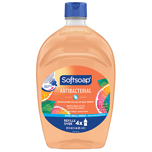 Softsoap Antibacterial Liquid Hand Soap, Crisp Clean is clinically proven to eliminate 99.9% of bacteria (in a handwashing test vs. the following common harmful bacteria: s. Aureus & E. coli). Softsoap is America's #1 Liquid Hand Soap brand, trusted to clean your hands since 1975. Due to its unique formula, the liquid hand soap pump should only be refilled with Softsoap Antibacterial Liquid Hand Soap. Wash hands with soap and clean running water for 2 seconds.
