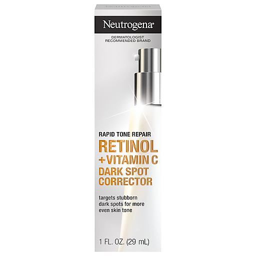 Neutrogena Rapid Tone Repair Retinol + Vitamin C Dark Spot Corrector Face Serum formulated with retinol and Vitamin C to target stubborn dark spots for more even skin tone. This advanced dark spot corrector works to renew the look of skin, by helping to brighten skin tone. Facial serum helps improve the look of stubborn dark spots and smooths the look of fine lines and texture, for smoother, more even-looking skin. It is specially formulated with retinol, a dermatologist-proven form of vitamin A, which fights fine lines, dullness, wrinkles and dark spots, and vitamin C, a known antioxidant which helps gently diminish the look of dark spots and skin discoloration for brighter, more even skin tone. Gentle enough for all skin tones and suitable for daily use in a regular skin care routine, the brightening serum is perfect for at-home self-care. Plus, it is free of mineral oil and dyes and comes from the #1 retinol brand used most by dermatologists.