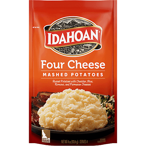 Whip up delicious, rich mashed potatoes in minutes with Idahoan Four Cheese Mashed Potatoes! Our instant mashed potatoes are always made with 100% Real Idaho potatoes and perfectly blended with Cheddar, Bleu, Romano and Parmesan Cheeses turning a classic favorite into a delightful dish. Perfect for a variety of wholesome recipes, Idahoan Four Cheese Mashed Potatoes are easy to prepare and ready in minutes. Simply heat water on stovetop or in a microwave, add the entire pouch of mashed potatoes, and voilà! Each order includes 1 (4oz) pouch with 4 (1/2 cup) servings. Whether you’re looking for traditional comfort food, or wanting a modern spin on classic dishes, Idahoan delivers Homemade Taste—Every Time.