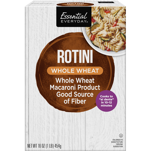 Per 1 Cup Dry: 200 calories; 0 g sat fat (0% DV); 0 mg sodium (0% DV); 2 g total sugars. Whole wheat macaroni product. Cooks to al dente in 10-12 minutes. Contents may settle. Products sold by weight not volume. 100% Quality Guaranteed: Like it or let us make it right. That's our quality promise. essentialeveryday.com. 100% recycled paperboard.