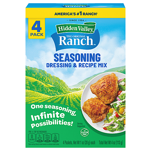 Spice up quick meals with Hidden Valley Original Ranch Seasoning Dressing and Recipe Mix. Made with a pre-portioned blend of zesty herbs and spices, this versatile ranch seasoning packet has endless culinary possibilities. The convenient packet is ready to rip open and start cooking—it's perfect for making fresh, creamy ranch dressing or creating quick meals or snacks the family will love. Use this gluten free seasoning mix to whip up a dipping sauce for veggie platters, pizza, party wings and fries. Or, mix this ranch seasoning mix with other spices to use as a dry rub seasoning for pork chops. To make Hidden Valley Ranch Dressing, combine 1 cup whole milk and 1 cup mayonnaise with package contents. Mix well. Cover and refrigerate. Chill for 30 minutes to thicken, stirring before serving. America’s No. 1-selling ranch dressing, Hidden Valley is Ranch Done Right (1).