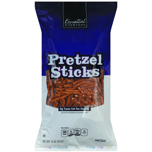 Per 42 Pretzels: 120 calories; 0 g sat fat (0% DV); 320 mg sodium (14%); 0 g total sugars. Great products at a price you'll love - that's Essential Everyday. Our goal is to provide the products your family wants, at a substantial savings versus comparable brands. We're so confident that you'll love Essential Everyday, we stand behind our products with a 100% satisfaction guarantee. 100% Quality Guaranteed: Like it or let us make it right. That's our quality promise. essentialeveryday.com.