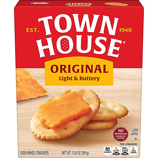 Light, buttery, and irresistibly crispy, Town House Original crackers are made for sharing. With a delicious oven-baked crunch and rich flavor in every bite, they’re a versatile pantry staple - perfect for everything from big celebrations to quick, easy snacks when friends drop by. Top them with cheddar cheese for a classic combination everyone loves. When company’s here, set them out with savory spreads and hearty dips. A trusted favorite since 1940, these crackers are the ideal centerpiece for party platters, appetizers, and game day snacks. Each cracker is baked in the USA and made with no artificial colors, flavors, or high fructose corn syrup. Top them with your favorite ingredients or whip together a quick tuna salad or spinach dip for crowd-pleasing snacks. Set out a plate and grab your favorite toppings. With Town House crackers, you’re ready to say “Come on in!”