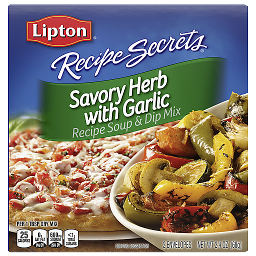 Lipton Recipe Secrets Savory Herb with Garlic Soup and Dip Mix is the perfect blend of garlic and herbs. This savory Dry Soup Mix is your seasoning secret for flavorful family meals. Add it to everything—from chicken to your favorite vegetables, soups and so much more, and watch your family’s eyes light up with every delicious bite. It's also a convenient go-to for any party occasion. For a quick and delicious crowd-pleaser, simply combine this beefy onion mix with a few basic ingredients for an instant, delicious appetizer!