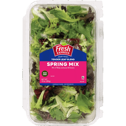 Weekly Ad Digital Coupons Curbside Pickup Favorites FAQs ⓘ Fresh Express Salad, Spring Mix 10 ozMix of baby lettuces, greens & radicchio. No preservatives. Contains no romaine. Questions? Comments? Call 1-800-242-5472. Product of USA.